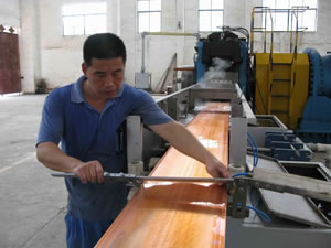 The MFCCE series copper Strips Continuous Extrusion Line makes use of the advanced technology in the world. Such blank material as copper or aluminum rods will be continuously fed into a revolving squeezing wheel with a fixed groove. At this time, due to the enormous frictional force and extrusion force, a sufficient temperature can be achieved. This temperature makes the materials to re-crystallize. Then, the material will be extruded and shaped out from the special dies. Thus, various kinds of aluminum or copper profiles will be manufactured continuously.