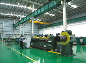 The line is composed of hydraulic expansion decoiler, No.1 storage pit, slitting machine, No. 2 storage pit, guiding & tension device, recoiler, unloading car, hydraulic system and control system.